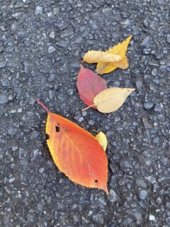 今日は、きれいな秋の日。かしゃかしゃ踏みしめるの楽し。あまり、お掃除しなくていいですよ〜と心の中で言いながら、お掃除の方とすれ違う。