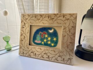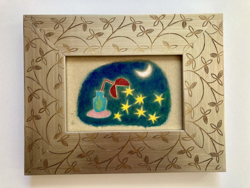 「星の実り」by 小川ナオin 「星をつなぐ」展、ブログ、展示on 投稿日: 2025年12月1日 「星の実り」(150×101) 油彩 紙 sold 以前からなかなか使えずにいたちょっと個性的な額。 紙に油彩作品だと、すんなりなじみ、うれしかったです。